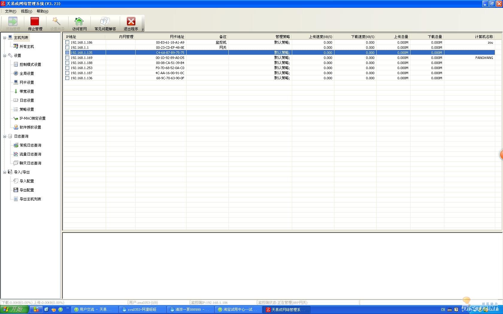 怎么管理不了,内网的机子全都显示出来了,就是没流量显示的监控信息,像2.26版本就有流量显示。谁能告诉我是什么原因