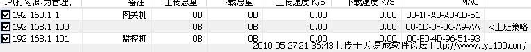 开启了天易管理~~显示了3台机器~~但是只有2台电脑~~另外一个我估计是路由器的~~但是3台IP全部没有显示流量和下载~~居然全部是0~~也限制不了任何东西~~~我该怎么做啊