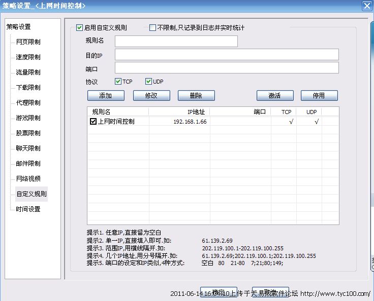 我不清楚时间设置里面的含义。是10:00-11:00这段时间控制这台电脑不能上网,其它时间就可以上网了是吗?还是到11:00就不能上网了呢?